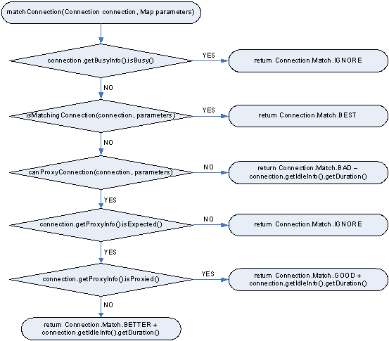In order to implement connection matching, the isMatchingConnection(Connection connection, Map parameters) method must check if the connection matches the specified parameters. Here is a sample implementation: