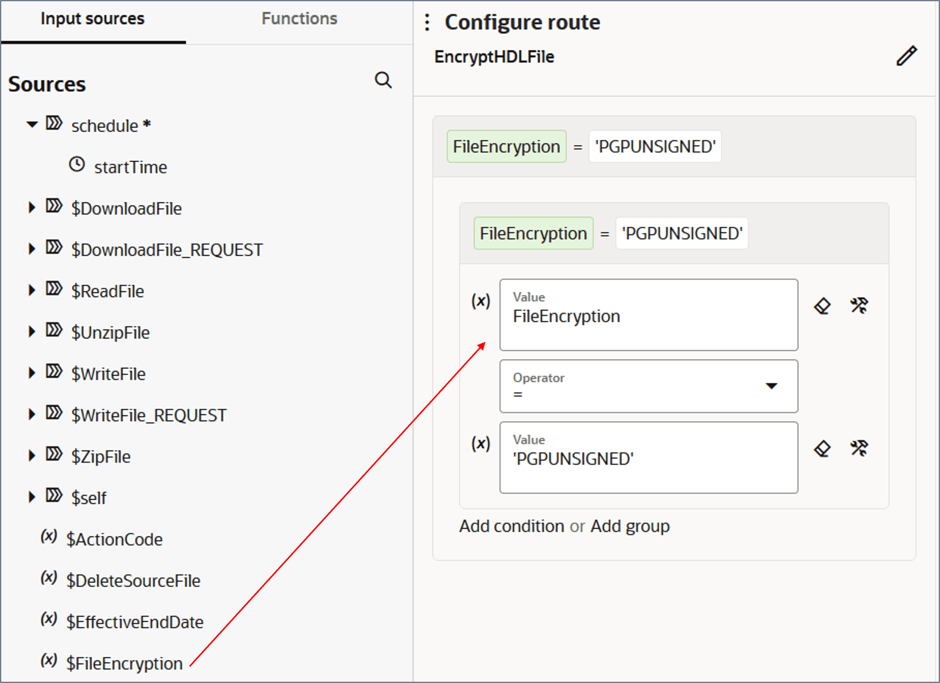 - Crie esses mapeamentos entre o elemento ICSFile dos elementos de origem $EncryptFile e de destino FileUpload: