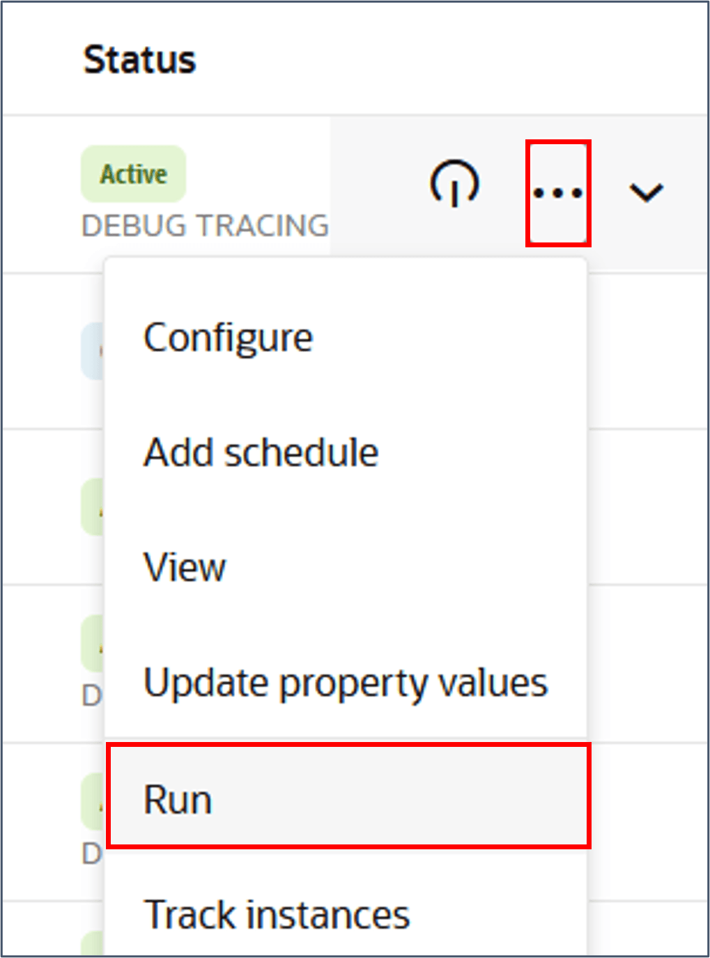 - Clique no ícone de ações no menu de linhas e selecione Executar.