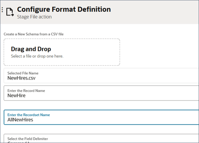 Nesta tarefa, você lerá todo o conteúdo do arquivo pronto para transformá-lo na forma do arquivo do objeto de negócios HDL.