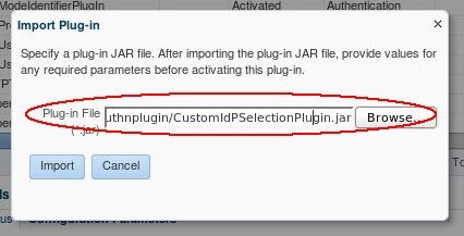 Observação Importante: o arquivo JAR deve ter o mesmo nome da classe que implementa o plug-in; nesse caso, CustomIdPSelectionPlugin.jar
