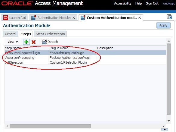 Esses três elementos são agrupados em um arquivo JAR que é submetido a upload para o servidor OAM por meio da Console de Administração do OAM. Depois de fazer upload e ativá-lo, crie um Módulo de Autenticação da Federação.