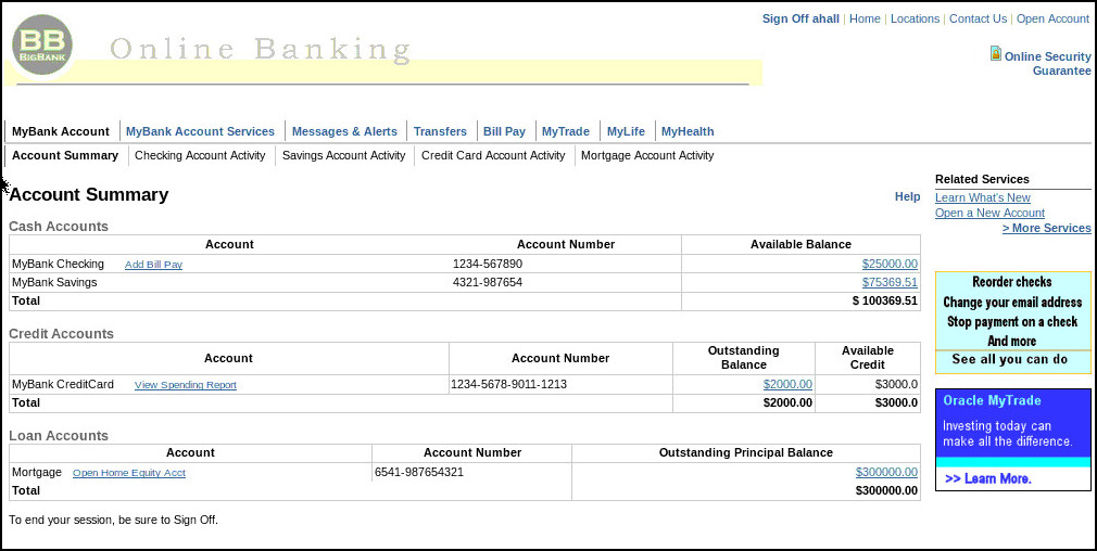 http://oam.example.com:8003/mybank. A página deverá ser exibida da seguinte forma:
