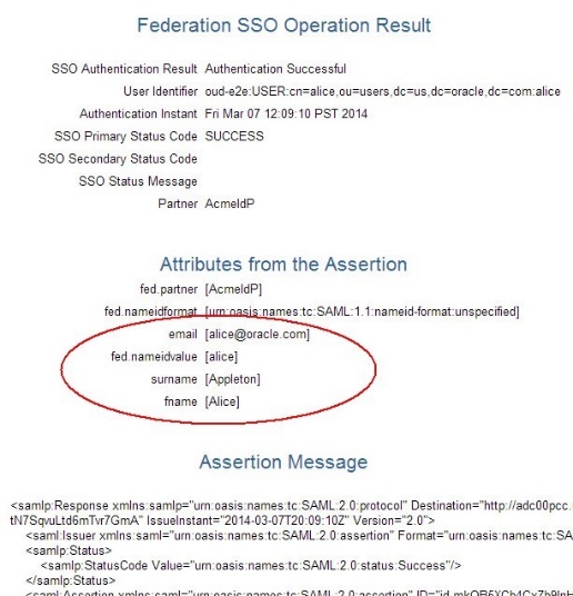 <saml:AttributeValue ...>alice@oracle.com</saml:AttributeValue>