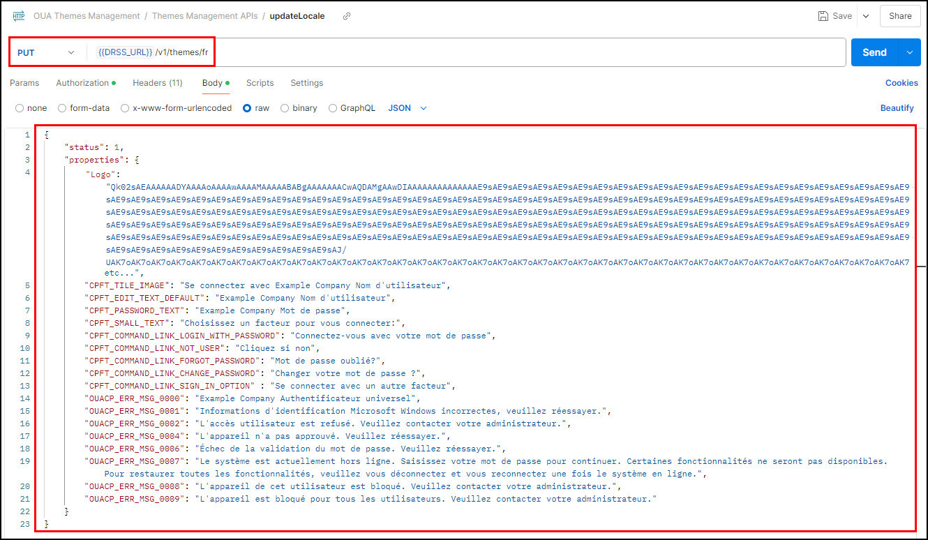 oaa-drss/v1/themes/<locale>e cria ou atualiza um tema para a localidade necessária com base nas informações no Corpo.Atualize ou remova campos e valores conforme apropriado.