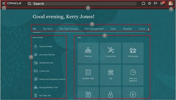 使用“全局搜索”、“关注事项”和“收藏夹”等工具可查看或访问您需要处理的内容。此时,如果要从任何页面返回主页,可以单击主页图标或全局标题中的标识。 |