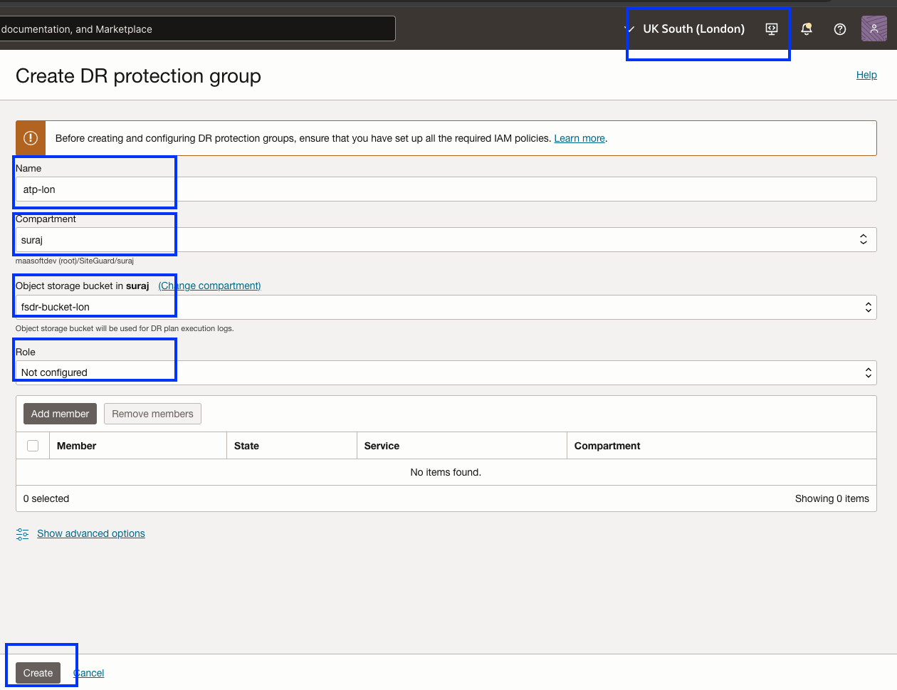 因此,我们已成功将所需成员添加到区域 1 中的 DR 保护组。