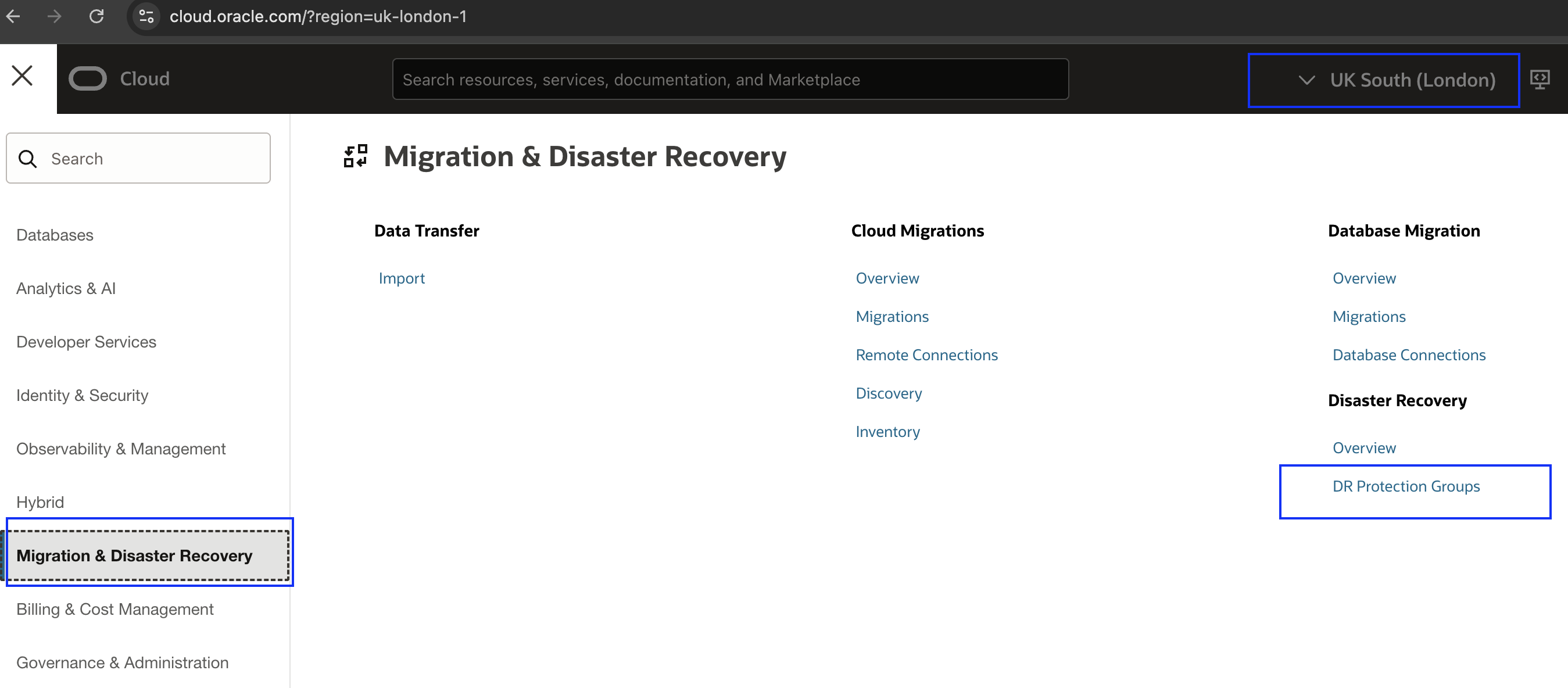 - 确保 OCI 区域上下文设置为“Region 1(伦敦)”。