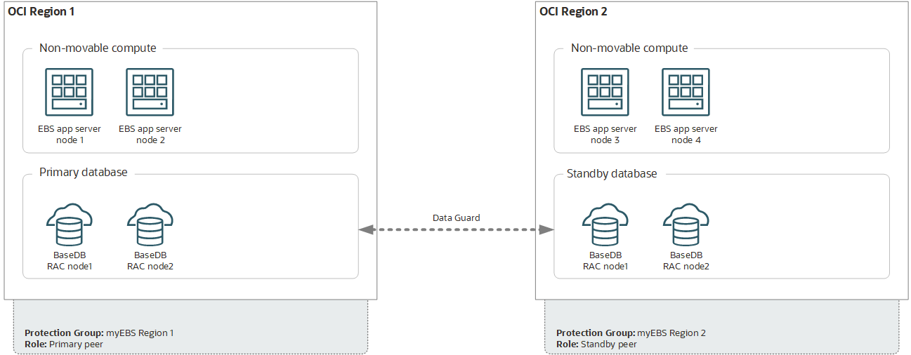- 在两个 OCI 区域中手动安装和部署 Oracle E-Business Suite for DR。