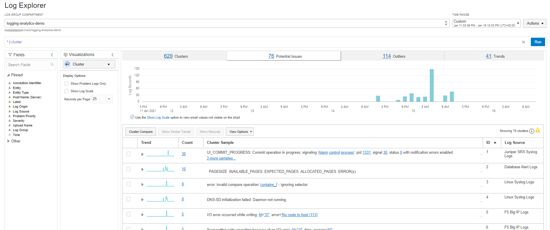 在本教程中,您将了解如何使用 Oracle Cloud Infrastructure Logging Analytics 轻松执行此类任务,包括异常检测、事件集群、日志关联和异常检测。