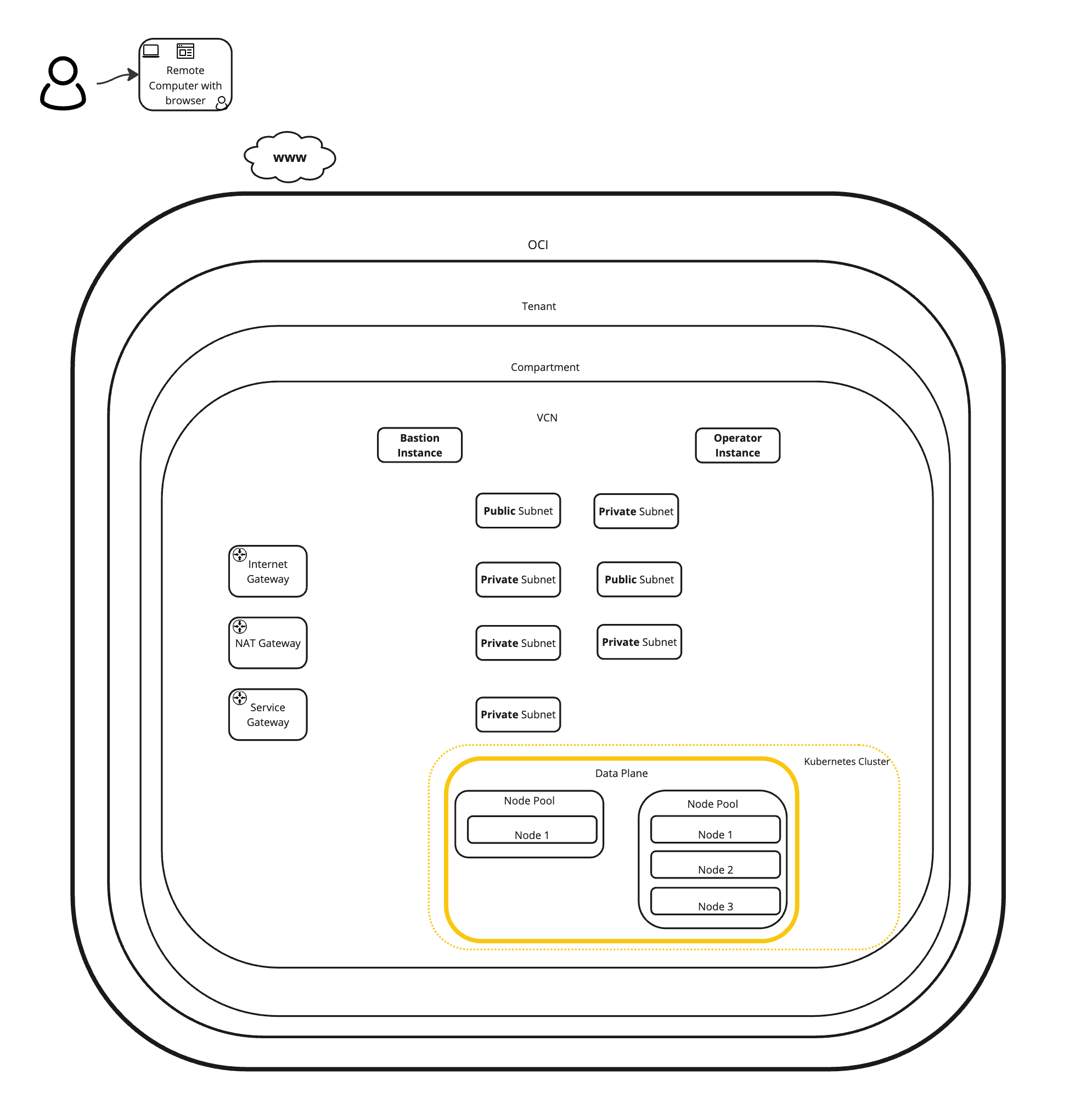 在本教程中,我们将使用 Terraform 在 OCI OKE 上部署一个非常具体的 Kubernetes 架构。