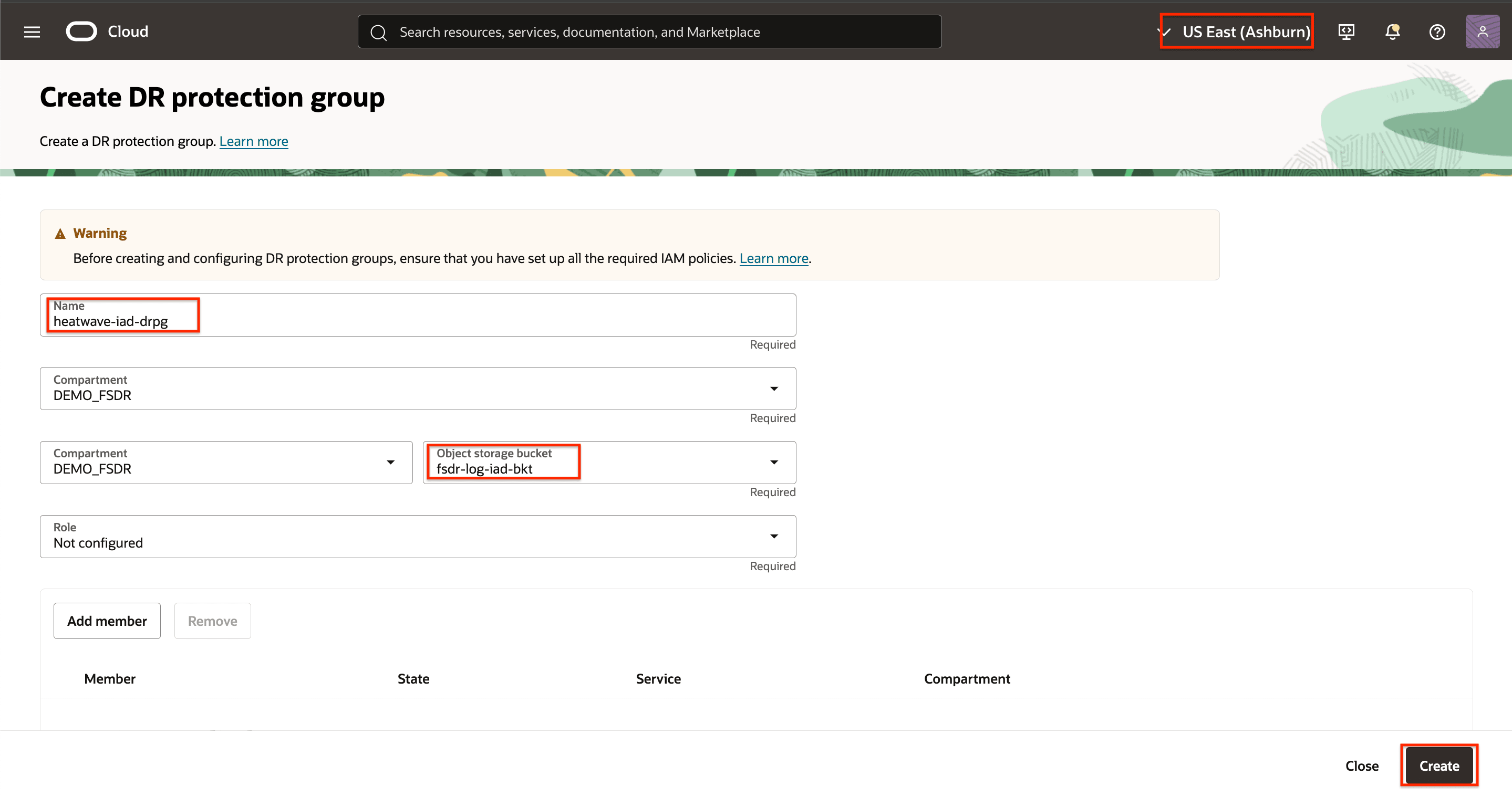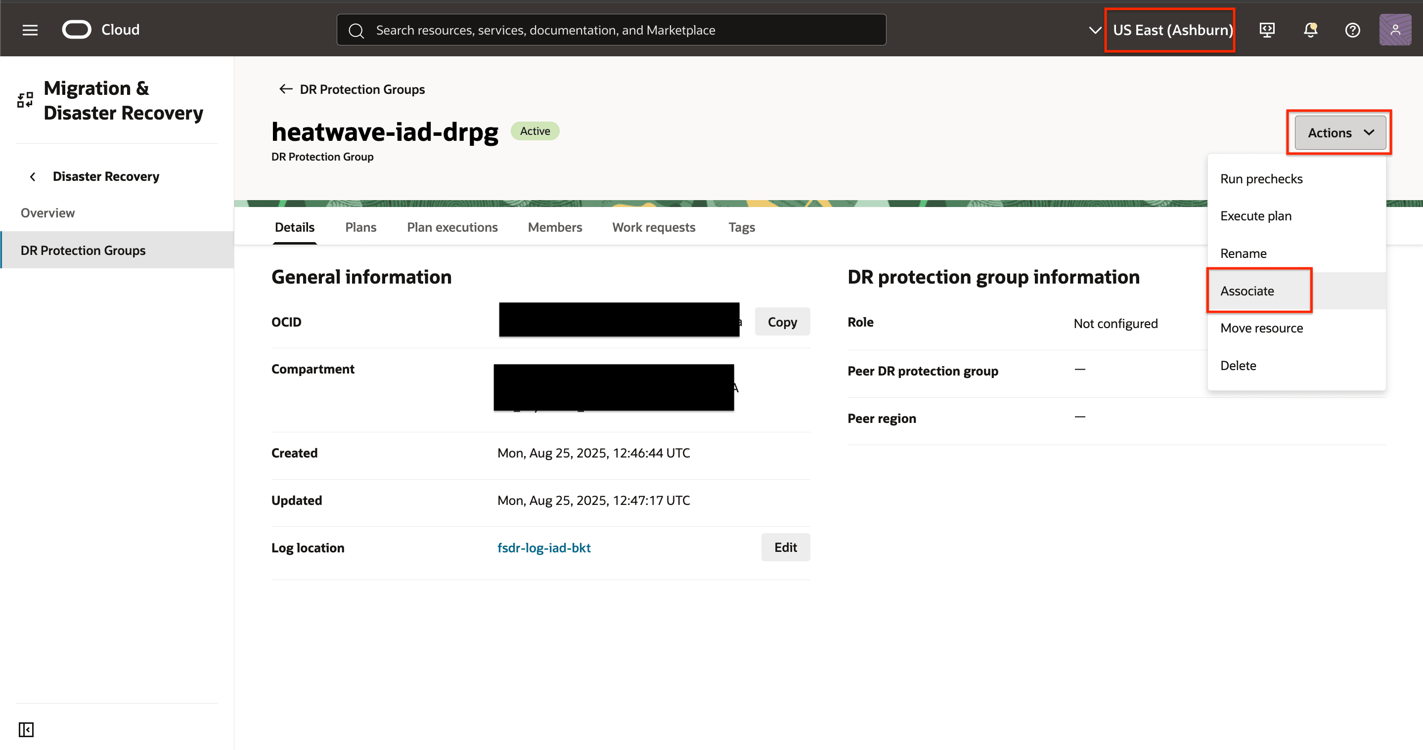 - 工作 2:將 MySQL HeatWave 新增至兩個區域中的 DR 保護群組